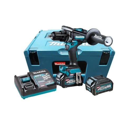 Parafusadeira e Furadeira de Impacto à Bateria 40V Makita com Carregador 220V com 2 Baterias + Maleta Mak-Pac - HP001GD2 Cor: Único Tamanho: ÚNICO Parafusadeira e Furadeira de Impacto à Bateria 40V Makita com Carregador 220V com 2 Baterias + Maleta Mak-Pac - HP001GD201-220V Parafusadeira e Furadeira de Impacto à Bateria 40V Makita com Carregador 220V com 2 Baterias + Maleta Mak-Pac - HP001GD201-220V é um equipamento ideal para diversos trabalhos de alto desempenho ao apertar e desapertar parafusos, furar madeira, metal, plástico e furar concreto em alvenaria com impacto. Sua bateria é projetada com a tecnologia XGT, indicada para as aplicações ainda mais pesadas, pois, oferece 40V, suportando ambientes extremos. Essa parafusadeira/furadeira Makita possui embreagem eletrônica e 2 velocidades mecânicas, para que o usuário utilize ao máximo do potencial da ferramenta. Conta com velocidade variável e rotação reversível, freio instantâneo e mandril de aperto rápido, garantindo maior agilidade, performance e segurança.