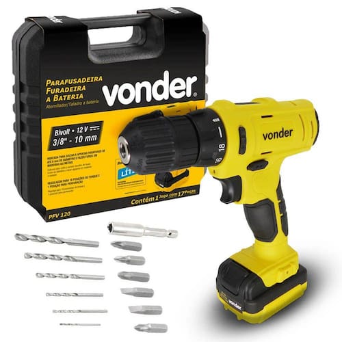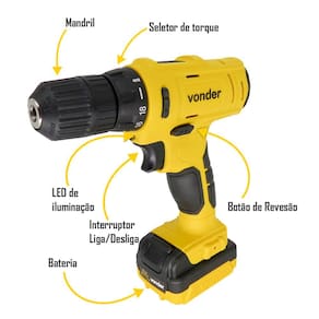 Indicada para soltar e apertar parafusos de até 6 mm de diâmetro e fazer furos em madeiras ou metais. Tempo de carregamento da bateria: 3 a 5 horas. Possui regulagem para 18 posições de torque e 1 posição para perfuração, LED para melhor visibilidade do local de trabalho e cabo com revestimento emborrachado, proporcionando maior conforto ao operador. Conta com bateria de íons de lítio, que confere alta eficiência de operação, indicador de carga da bateria, além de fonte bivolt automática com tensão de entrada de 100 V~ - 240 V~.