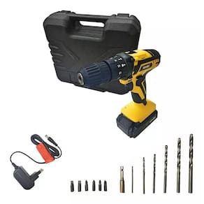 1 parafusadeira/furadeira, acompanha: 1 maleta, 1 bateria de 12 v, 1 carregador bivolt automático, 6 brocas de aço rápido 1,5 mm, 2,5 mm, 3,0 mm, 4,0 mm, 5,0 mm e 6,0 mm , 6 bits 2 fendas 5 mm e 6 mm , 2 phillips ph1 e ph2 e 2 pozidrive pz1 e pz2 e 1 soquete magnético encaixe de 1/4