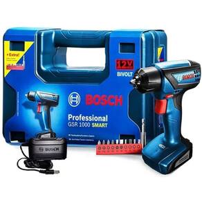 Vantagens: - Uma grande aposta em custo-benefício, a Parafusadeira e furadeira Bosch GSR 1000 Smart a bateria de 12V entrega grande durabilidade a cada carga e na preservação do produto. A cada carga de bateria, você ganha autonomia para até 600 parafusamentos. - Máxima autonomia: garante até 600 parafusamentos por carga. Tamanho reduzido facilita o trabalho dentro de locais apertados como gavetas ou armários. Ideal para furar e parafusar em madeira e MDF. Carregamento rápido: apenas 1 hora e a bateria está pronta. Potente com torque de 15Nm. Possui LED indicador de nível de carga para facilitar o monitoramento da bateria. - Uso profissional com 1 ano de garantia.