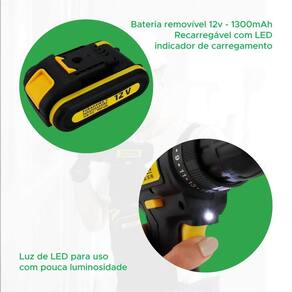 Furadeira e Parafusadeira KOKAY 2 Velocidades - Sem Fio, 1300 mAh A furadeira e parafusadeira sem fio da KOKAY, modelo SC-95, foi projetada para combinar precisão e praticidade em uma única ferramenta robusta e fácil de manusear. Com 2 velocidades ajustáveis 0-350 RPM e 0-1350 RPM , esta ferramenta atende tanto a trabalhos leves quanto a tarefas mais intensas. Conta com uma bateria de Íons de Lítio de 12V e capacidade de 1300 mAh, que oferece até 300 ciclos de recarga sem efeito memória, garantindo maior vida útil. O modelo é equipado com 25 + 1 posições de torque, proporcionando flexibilidade para diferentes tipos de materiais e aplicações. Um diferencial importante é a luz de LED, que auxilia em ambientes com pouca luminosidade, além da bateria removível com indicador de carga. Especificações Técnicas: - Velocidade: 2 modos 0-350 RPM e 0-1350 RPM - Capacidade da Bateria: 1300 mAh, 12V Íons de Lítio - Ciclos de Recarga: 300 ciclos sem efeito memória - Torque: 25 + 1 posições de ajuste - Diâmetro do Mandril: 3/8 10 mm - Luz de LED: Sim, para uso em baixa luminosidade - Bateria Removível: Sim, com indicador de carga - : 1 ano Itens Inclusos na Maleta: 1. Furadeira e Parafusadeira sem fio 12V Modelo SC-95 2. Maleta Plástica 3. Kit de Brocas 4. Kit de Bits para Parafusar 5. Prolongador 6. Bateria de Íons de Lítio 12V 7. Carregador Bivolt 8. Manual de Instruções Marca: Não Informado