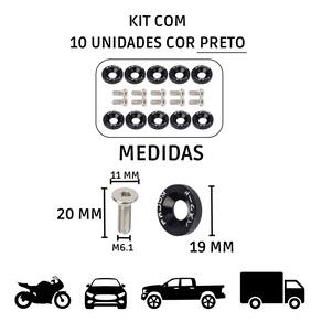 Parafuso Arruela Anodizadas 10 Unidade M6 Tuning Carro Preto - Cor: Preto