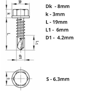 A Bitola deste parafuso é de 4.2mm, o Comprimento é de 19mm e a Cabeça é Sextavada de 6,3mm, possibilitando o uso de chave de boca comum ou de soquetes magnéticos adaptados a parafusadeiras. Isso proporciona agilidade e rapidez na conclusão dos serviços, além de garantir um excelente acabamento e um trabalho eficiente e profissional.