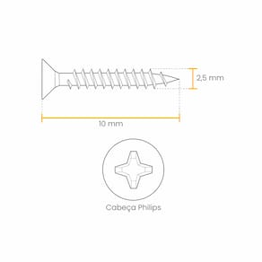 Marca: MK Tipo de cabeça: Chata Material: Aço Cor: Preto Comprimento: 10 mm Diâmetro: Ø 2,5 mm
