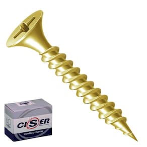 O parafuso modelo chipboard, com a bitola 3,5mm de espessura x 35mm de comprimento, cabeça chata, ponta phillips ou cruzada, da marca Ciser, tem as seguintes características: