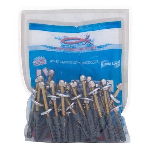 Fabricante: Mar Vermelho Composição dos itens: 20 Parafusos 3/16 x 65mm 20 Porcas de Acabamento 20 Buchas PE 20 Arruelas Plásticas Cromadas