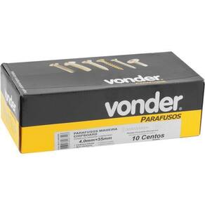 Conteúdo da embalagem1 Caixa com 1.000 parafusosAplicações e dicas de usoIndicado para fixações em madeiras e derivados, como: aglomerados, pínus e MDF. Pode ser utilizado também em alvenaria com o auxílio de uma bucha. Conhecido como parafuso CHIPBOARD.Destaques e diferenciaisPossui acabamento bicromatizado, proporcionando maior resistência contra oxidação/corrosão DETALHES TÉCNICOS Tipo de cabeça do parafuso madeira Chata - fenda cruzada/pozidrive Diâmetro do parafuso madeira: 4,0 mm Comprimento do parafuso madeira: 55,0 mm Material do parafuso madeira: Aço carbono Acabamento do parafuso madeira: Bicromatizado - zincado amarelo