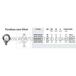 parafuso olhal macho em inox 316 rosca m12 argola reforçada parafuso olhal em inox com roscadescrição do produtoem aço inox com parafusos de aço inoxidável resistência à corrosão, alta dureza. Função: pode ser utilizado em casa, ao ar livre, engenharia, fixação forte, máquinario entre outros. Marca: nautparts modelo: parafuso olhal