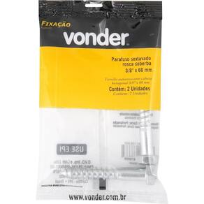 Marca: VonderConteúdo da Embalagem:1 Cartela com 2 parafusos sextavados rosca soberbaDestaques e diferenciais:Possui acabamento zincado, proporcionando maior resistência contra oxidação/corrosãoAplicações e dicas de uso:Indicado para fixações entre duas ou mais partes, como aplicação em madeira, alvenaria e concreto para concreto, necessita utilização de bucha de fixação Características Técnicas:Diâmetro do parafuso sextavado pol : 0.3/8 Comprimento do parafuso sextavado mm : 60,0 mm Marca: Não Informado