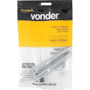 Marca: VonderConteúdo da Embalagem:1 Cartela com 2 parafusos sextavados rosca soberbaDestaques e diferenciais:Possui acabamento zincado, proporcionando maior resistência contra oxidação/corrosãoAplicações e dicas de uso:Indicado para fixações entre duas ou mais partes, como aplicação em madeira, alvenaria e concreto para concreto, necessita utilização de bucha de fixação Características Técnicas:Diâmetro do parafuso sextavado pol : 0.3/8 Comprimento do parafuso sextavado mm : 70,0 mm Marca: Não Informado Ean: 7893946678692