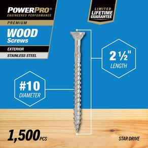 Power Pro 48627 Parafusos de madeira exteriores, #10 x 2-1/5.1 cm, revestido com epóxi, acionamento Torx/Star incluído, rosca grossa, parafusos de deck, resistente à ferrugem ao ar livre, aço