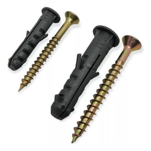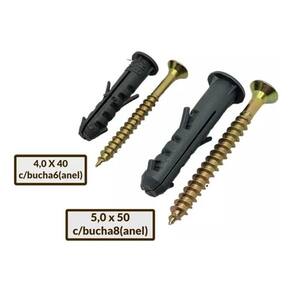 O anúncio inclui: - 50 parafusos 5,0 X 50 Chipboard Chata Phillips Bicromatizado - 50 buchas8 com anel - 50 parafusos 4,0 X 40 Chipboard Chata Phillips Bicromatizado - 50 buchas6 com anel Descrição dos Parafusos: - Parafusos Chipboard com cabeça chata e fenda Phillips nº 2 - Acabamento bicromatizado - Tratamento cementado para aumentar a dureza - Rosca autocortante - Material de aço de baixo carbono 1014 a 1018 Descrição das Buchas: - Buchas de plástico com anel - Feitas de polietileno de alta densidade Esperamos que tenha uma ótima experiência de compra.