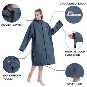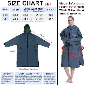 Jaqueta de natação de camada dupla e impermeável com forro de lã quente, roupão unissex! Esta parca de natação estilo capa de chuva tem uma camada externa respirável, à prova de vento e repelente de água, que é durável e prática com capuz, dois bolsos frontais com abertura e fechamento com zíper para facilitar o armazenamento. Muito adequado para esportes de neve, esportes ao ar livre: esqui, acampamento, caminhadas, pesca, ciclismo, corrida de inverno, também adequado para uso como manto na praia ou natação, mergulho, surf, caiaque e qualquer outro esporte aquático. Especificações: Material: fibra de poliéster + forro de lã Dimensões (comprimento x largura): G-GG: 110 x 80 cm P: 100 x 65 cm. Cor: preto, vermelho, azul e azul marinho A embalagem inclui: 1 parca de natação Dicas: De acordo com a medição manual, há uma diferença de 1 a 2%, verifique o tamanho cuidadosamente antes de comprar. Obrigado! - Tamanho grande: parque de natação grande para adultos e jovens unissex. LxW: 43,3" x 31,5" (110 x 80 cm), peso: 1,87 lb(0,85 kg), comprimento da manga: 31,5" (80 cm). (Comprimento do ombro à bainha, excluindo o capuz) - MANTENHA QUENTE: Tecido PET externo à prova de vento e à prova d'água com forro interno de lã curto, mantém seu corpo aquecido e seco em qualquer clima. As mangas inteiras são mais herméticas e quentes para o braço em baixas temperaturas. - Design exclusivo: zíperes de bolso com barreiras de água, que podem ser fechados para evitar a chuva. A bainha dividida torna a caminhada mais conveniente. O design com capuz protege a cabeça do vento e da chuva. - Fácil de limpar: lavável na máquina, mas não secar na secadora. Pendurar ou secar na horizontal após a lavagem. A superfície é resistente à sujeira e poeira. Você pode simplesmente enxaguar com água e secar. - Uso multiuso: nosso poncho de trocador é adequado para surfistas, nadadores, mergulhadores, esquiadores, ciclistas ou qualquer pessoa que troque de roupa ao ar livre. Claro, também pode ser utilizado como uma jaqueta impermeável doméstica à beira da piscina, lago ou rio. Resumindo, é a escolha ideal para vestir ao ar livre.