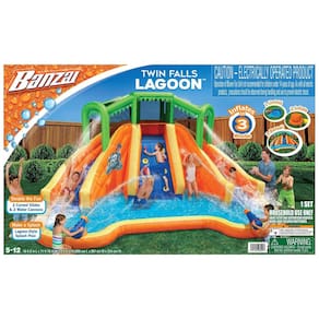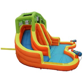 Aproveite a diversão com nossos escorregas duplos e 2 canhões de água Este produto permite que você deslize e mergulhe na piscina da lagoa, proporcionando horas de entretenimento para toda a família. Com inflação rápida em menos de 3 minutos, É perfeito para acomodar várias pessoas. Além disso, o conjunto de mangueira de pulverização de água removível permite que você ajuste a intensidade da água para uma experiência personalizada. A associação inflável do respingo de 74L X de 56W X de 35H é ideal para os mais pequenos se divertirem na água. E para sua conveniência, incluímos um patch de reparo e etiqueta de observação de água. Aproveite o verão com este incrível produto