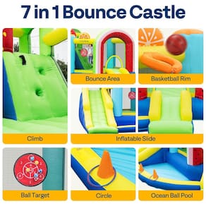A Casa de Pulos VIVOHOME é feita com materiais duráveis e seguros, como tecidos Oxford 420D e PVC 840D resistentes a perfurações, garantindo longa durabilidade. Com costuras reforçadas, paredes de malha para ventilação e visibilidade, é segura e ecológica. Com trampolim, cesta de basquete, argola de arremesso e alvo de bola, oferece diversão ilimitada para manter as crianças se movimentando, rindo e entretidas. Fácil de montar e desmontar com inflador de ar de 450 W, inclui todos os acessórios necessários. Capacidade para 3 a 4 crianças, recomendado para maiores de 3 anos e até 100 lb. Presente perfeito para promover atividade física, coordenação e equilíbrio, garantindo diversão sem fim.