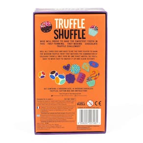 Truffle Shuffle - Jogo de festa rápido e dinâmico do Professor Puzzle. Teste sua concentração e velocidade neste jogo rápido para toda a família. Lance os três dados e corra para ser o primeiro jogador a pegar a guloseima de madeira correspondente. O conjunto contém 3 dados de madeira, 41 trufas de chocolate de madeira, um saco de algodão e instruções. Parte da coleção Professor Puzzles Puzzleman, brinquedos e jogos divertidos para a família.