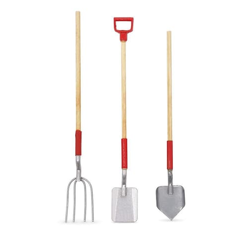 - O pacote inclui: 1 pá em miniatura, 1 pá quadrada, 1 forcado (não incluindo outros itens)