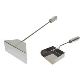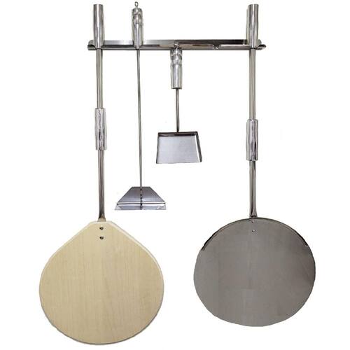 1 Pá para cinzas: fabricada em aço inox. 1 Rodinho para cinzas ou brasa, fabricada em aço inox 1 Pá inox 30 cm + Cabo com manopla Deslizante inox 68cm 1 Pá Madeira Caxeta 30 cm + Cabo com manopla Deslizante inox 68cm 1 Suporte de parede em inox + jogo de buchas e parafusos para fixação