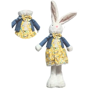 Esta coelha decorativa da Cromus se destaca pela sua paleta de cores: branco (BCO), azul (AZL) e amarelo (AMA). Essa combinação cria um visual alegre e vibrante, perfeito para celebrar a Páscoa.
