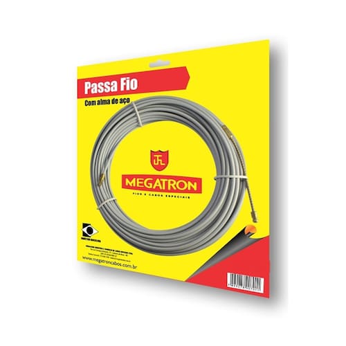 O Passa fio Megatron é durável, resistente e flexível, proporcionando facilidade nas instalações elétricas. Modelo: Passa Fio com alma de aço; Cor: cinza Tamanho: 20m Alma: Cabo de aço latonado; Isolação: Polipropileno; Ideal para: Uso geral; Passar fio em conduítes. Características: Corpo sextavado; alma de aço Ean: 7899278907080