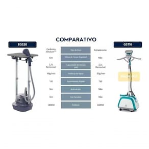 Resumo O Vaporizador de Roupas Electrolux Expert EGS20 oferece facilidade na hora de desamassar suas roupas, além de cuidado com os tecidos. Para trazer mais comodidade no seu dia a dia, o Vaporizador possui uma tábua de passar regulável. Design pensado para oferecer um maior conforto e pde ao passar roupas na ical ou na horizontal. Com o Power Steam, é possível eliminar até 99,99% de bactérias dos tecidos em apenas 1 minuto. Sendo a solução ideal para quem busca renovar as peças sem a necessidade de um ciclo completo de lavagem e secagem. O Cabo Flexível e a Tecnologia e robustez da Base Glissium garantem um fácil deslizamento sobre o tecido além de ser resistente a riscos. Com alta potência de 40g de vapor por minuto, indicado até para tecidos mais grossos. O Vaporizador de Roupas Electrolux Expert EGS20 tem três Funções Programadas que m ntes intensidades de vapor, permitindo alto desempenho nos resultados de acordo com sua necessidade. Eco para um menor consumo de energia, Refresh para eliminar rugas do dia a dia e De-Wrinkle para eliminar rugas mais difíceis. O reservatório de água com Alta Capacidade é removível com 2,5L e garante uma autonomia de até 1 hora direto sem necessidade de reabastecimento. Teste conduzido pela SGS com base na norma chinesa para vaporizadores de roupas QB/T 5200-2017 em novembro de 2021 para bactérias do tipo Escherichia coli (CICC 10389), Staphylococcus aureus subsp. aureus ATCC 653 e Candida albicans (CICC 1965 em 1 minuto de tempo de vaporização a uma temperatura superior a 95C. Embalagem Vaporizador de Roupas Electrolux Expert (EGS20) 1 Luva protetora 1 Escova remove pelos Garantia do produto 12 meses Manual de Instruções Especificações Técnicas Cor: Azul Capacidade do Tanque de Água: 2,5L Altura: 80cm a 170cm (mínimo e máximo Largura: 34 cm Profundidade: 30 cm Quantidade de Saídas de Vapor: 10 Saídas Reais de Vapor Potência de Vapor: 40g/min Voltagem: 127V 220V
