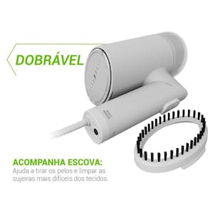 Acompanha escova para remoção de pelos e sujeiras. Mantenha suas roupas impecáveis com praticidade e precisão onde você estiver!