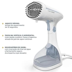 Recursos: Cabeça dobrável; uso vertical e horizontal; luzes de funcionamento; chave acionadora de vapor