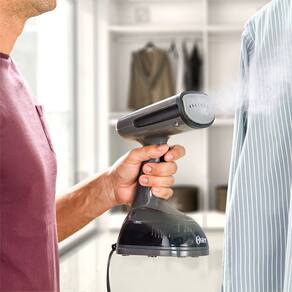 Passadeira a vapor portátil Oster desamassa, desinfeta e desodoriza tecidos. Possui vapor contínuo e jato extra de vapor, formato compacto para viagem, placa para encostar nos tecidos e reservatório de 240ml com autonomia de 15 minutos.Lâmpada piloto