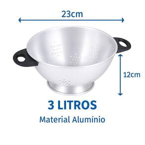 Passador De Macarrão Em Alumínio 22cm Escorredor de Macarrão em Alumínio - 3 Litros - Alumínio Globo