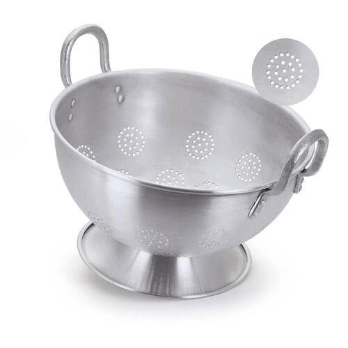 Passador Escorredor de Massa Profissional Hotel Alumínio Nº45 - 20Litros Passador e Escorredor de Massa e Macarrão grande profissional em alumínio polido, reforçado. Com furo nas laterais e na parte de inferior. Garante maior durabilidade, com alças nas laterais para facilitar o manuseio na hora de escorrer a massa, é um item indispensável nas cozinhas industriais. Prepare massas deliciosas para seus clientes ou convidados com o Passador Escorredor Profissional. Recomendação: Lave sempre em água morna e sabão, para remover quaisquer resíduos provenientes do polimento da peça. Características Altura: cm Diâmetro: 45cm Comprimento: cm Capacidade: 20 Litros Ean: 7899763501366