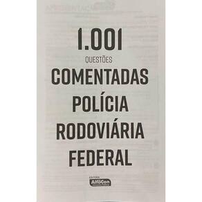 1001 QUESTÕES COMENTADAS - POLICIA RODOVIARIA FEDERAL: Inovação e comprometimento com o aluno são as principais diretrizes da empresa, e, seguindo essa premissa, a Editora AlfaCon em parceria com os autores, fez uma compilação das questões da obra Passe Já 5.000 carreiras policiais e criou uma edição especial com 1.001 questões voltadas para o concurso da Polícia Rodoviária Federal. Assim você poderá estudar de forma mais direcionada, objetiva e com questões 100% focadas no edital. Esperamos que você aproveite muito este material. Bons estudos!