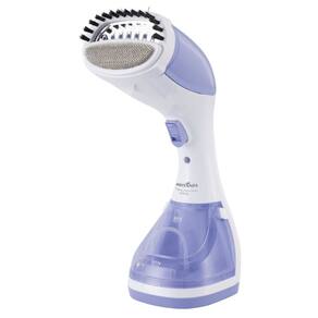 Passadeira a vapor portátil com reservatório de 180ml, chave de segurança, luz de funcionamento, cordão de 1,90m, copo dosador, escova para fiapos, aquecimento rápido de 30 segundos e vapor contínuo.Lâmpada piloto