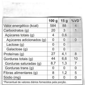 Amendoim torrado, adoçante edulcorante eritritol, polidextrose, edulcorante glicosídeo de esteviol e antiumectante dióxido de silício.