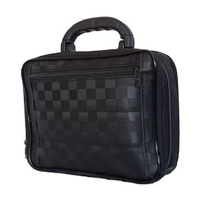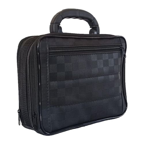 Bolsa para bíblia hinário congregação cristã no brasil Modelo grande com alça superior Cor: preta Tecido: quadriculado f1 Não cabe hinário de violino ou viola Cabe bíblia e hinário com no máximo 23 cm de comprimento Confeccionada com materiais de qualidade Parte externa revestida em tecido sintético Parte interna revestida em tnt e tecido sintético Alça reforçada com rebite Bolsos externos: 1 Bolsos internos: 3 Porta caneta: 1