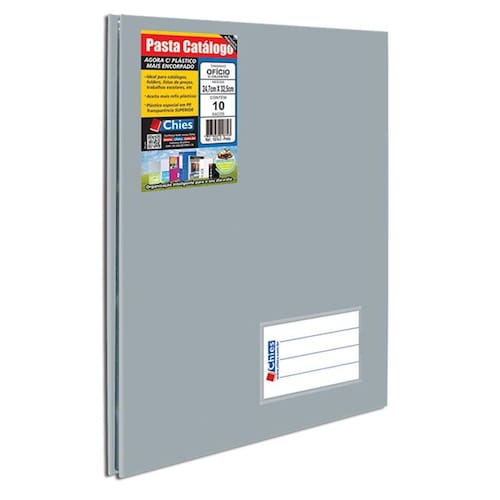 Pasta Catálogo Chies com 10 Envelopes Plásticos. Utiliza colchetes para fixar os plásticos.