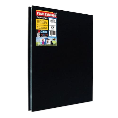 Pasta catálogo ofício economic 0221-9 preta com 50 plásticos - Hemon