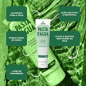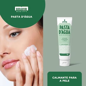 Pasta d'agua bravir 80g Pasta dágua é indicada para acalmar e aliviar a pele.Também tem ingredientes que propiciam ação secativa e protetora--------------------- BIG BOOST ------------------------Bravir Pasta D'Água Simples 80GDESCRIÇÃO:Produto indicado a pessoas com sensibilidade aos componentesda fórmula.AÇÃO/ATIVOS:indicado como antisséptico, secativo ecicatrizante. Uso adulto e pediátrico.MODO DE USAR:Aplicar nas áreas afetadas, duas a três vezesao dia, exceto em zonas pilosas. Agite antes de usar.ESTE ANÚNCIO CONTÉM: 01 UNIDADE DE BRAVIR PASTA D ÁGUA SIMPLES 80G