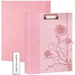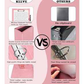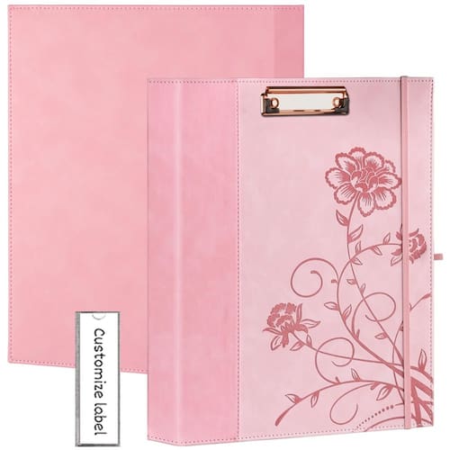 Fichário de 3 anéis de 2,5 cm, fichários de couro com pranchetas, fichário de três anéis KLLVE com suporte para caneta (rosa, tamanho carta)