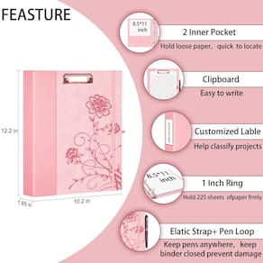 - ?Organizador de pastas versátil?O fichário com prancheta na frente pode ser uma superfície de escrita. O interior possui dois bolsos para guardar documentos em tamanho carta e papéis soltos importantes. Também vem uma etiqueta de lombada para ajudar você a classificar o fichário. O laço elástico para caneta mantém suas canetas de tinta seguras. As tiras elásticas fecham com segurança para evitar que o conteúdo seja danificado ou perdido durante a viagem.
