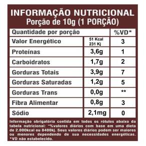 Feita com amendoim torrado, soro de leite, chocolate ao leite zero açúcar, granulado zero açúcar e outros ingredientes de qualidade, essa pasta de amendoim integral é livre de glúten e contém lactose e derivados de soja. Além disso, possui em sua composição maltitol, cacau, manteiga de cacau, emulsificante de lecitina de soja, sucralose e amor.
