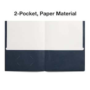 - As pastas escolares são feitas de cartolina azul marinho, por isso são duráveis e leves. Dois bolsos oferecem espaço de armazenamento para papéis, folhetos e muito mais. Comporta confortavelmente papel tamanho carta padrão. 25 por caixa são suficientes para praticamente qualquer projeto. A capacidade de 50 folhas permite a organização conveniente de papéis soltos.