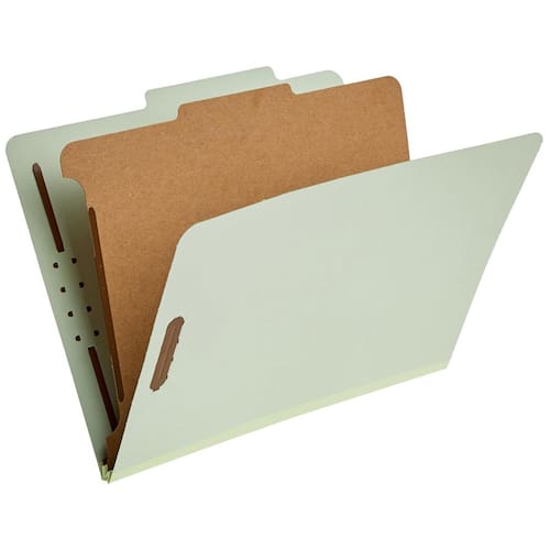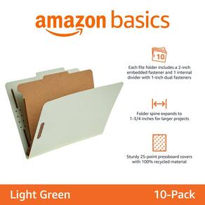 - Pastas de arquivos de classificação em verde (pacote com 10), cada uma com 1 divisória interna; ideal para documentos tamanho carta de 8,5 x 11 polegadas