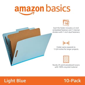 - Pastas de arquivos de classificação em azul claro (pacote com 10), cada uma com 1 divisória interna; ideal para documentos tamanho carta de 8,5 x 11 polegadas