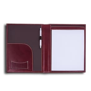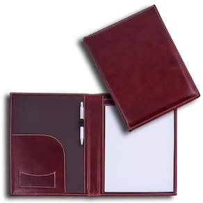 Pasta de Convenção confeccionada em Couro Vinho contendo: -Aba para papéis e porta-cartão -Porta-bloco com bloco de anotações A4 contendo 20 folhas -Porta Caneta Caneta não inclusa Marca: Não Informado