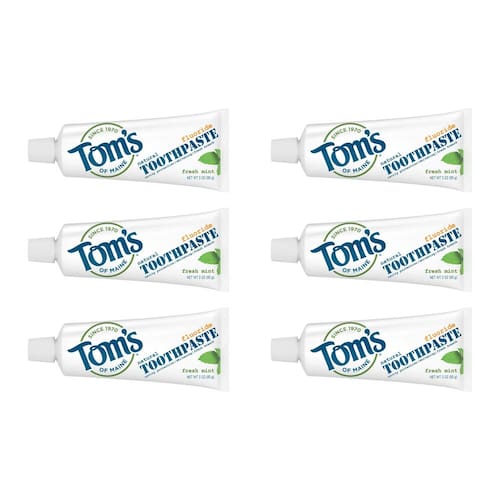 Tom's of Maine Pasta de dente de menta fresca anticavidade tamanho viagem, 85 g, pacote com 6 (a embalagem pode variar) - PROTEÇÃO NATURAL DA CAVIDADE DE CAVIDADE: Contém tubos de 3 a 7 onças de pasta de dente anticavidade Tom's of Maine em sabor de menta fresca. Ajuda a evitar cáries com a pasta de dente natural da Tom - Livre de adoçantes artificiais: a pasta de dentes Toms tem orgulho de ser derivada de ingredientes naturais. Não há sabores, cores ou conservantes artificiais - Nunca testado em animais: Confie que a pasta de dente natural Toms não contém ingredientes animais e nunca é testada em animais - CERTIFICED B CORP: A Tom's of Maine atende aos mais altos padrões de desempenho social e ambiental verificado, transparência pública e responsabilidade legal para equilibrar lucro e propósito - Dando pela bondade: Acreditamos em retribuir. A Tom's of Maine doa 10% dos nossos lucros para instituições de caridade comprometidas com a saúde, a educação e o meio ambiente das crianças.