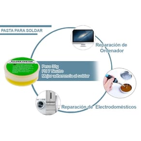 PASTA DE SOLDAGEM\ NCaracterísticas: --------------------------------------------------------------- 100% nova * Usada para facilitar a soldagem. * Limpa e evita a oxidação do metal, permitindo que a soldagem crie ligações mecânicas e elétricas fortes e duráveis. * Também atua como um agente umectante, aumentando o fluxo de soldagem e a eficiência do processo de soldagem. * Perfeita para telefones celulares, placas de PC e outras soldas eletrônicas sofisticadas de fluxo em nível de chip. Especificações:\ nTamanho da caixa: 6cm x 6cm x 2,2 cm\ nCor: amarelo'\ nConteúdo: 30Gr\ nO pacote inclui: 1x pasta de solda\ nConsulte qualquer pergunta antes de oferecer\ nPolítica de vendas:\ n* Todos os nossos produtos são testados antes de serem armazenados. * Todos os nossos produtos (peças de reposição para TV) Uma vez testados e verificados, seu funcionamento adequado é identificado com uma etiqueta que garante seu funcionamento adequado. * O o comprador é responsável por quaisquer consequências que uma instalação incorreta possa causar. * Em caso de devolução, o comprador assume o custo de envio da tarefa. * Devido a O produto delicado, os componentes eletrônicos NÃO têm garantia (diodos, memórias, transistores, etc) * A compra só será devolvida se o produto estiver em boas condições e a etiqueta identificando o produto conforme revisado não tiver sido removida.* Nenhuma devolução é feita devido ao diagnóstico incorreto da falha, o cliente ou técnico deve ter certeza de que a falha de seu equipamento está no produto a ser oferecido. Políticas de envio. * Todas as remessas serão feitas pelas agências CHILEXPRESS * As remessas serão feitas de segunda a sexta-feira às quatro da tarde. Os produtos oferecidos após esse horário serão enviados no dia seguinte. Também convido você a esclarecer qualquer dúvida, estamos prontos para ajudar! Saudações!