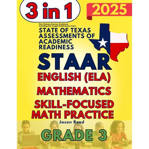 3ª série de preparação para o teste STAAR: a apostila definitiva para matemática, alfabetização artística em inglês (ELA) e prática focada em habilidades, incluindo testes completos