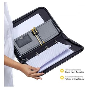 Eleve sua organização e profissionalismo com a Pasta Fichário Incorpast 16441, a parceira ideal para dominar seus estudos e projetos. Transforme sua rotina com organização impecável e estilo: Flexibilidade Total: Adicione e remova folhas com o sistema de argolas removíveis, adaptando o fichário às suas necessidades por anos. Prancheta Integrada e Destacável: Utilize a prancheta separadamente para anotações rápidas, liberando seu fluxo de trabalho. Design Sofisticado e Durável: Feita em material sintético de alta qualidade, costurada e almofadada para um toque premium e resistência. Organização Inteligente: Compartimentos internos, porta-cartões e porta-canetas duplos para manter tudo em ordem. Fechamento Seguro: Zíper que protege seus documentos e pertences com total segurança. Especificações Técnicas: Produto Artesanal Fabricado no Brasil Revestimento em Material Sintético de Alta Qualidade Costurado e Almofadado Fechamento com Zíper Bolsa Interna Divisória Porta Cartões Porta Canetas Duplo Argolas Removíveis Modelo: 16441 Marca: Incorpast Dimensões: Espessura: 5 cm Largura: 27 cm Comprimento: 38 cm de Fábrica: 3 Meses Não perca a chance de otimizar seu dia a dia Adquira agora sua Pasta Fichário Incorpast 16441 e sinta a diferença na sua produtividade e imagem . Clique em Comprar e garanta a sua
