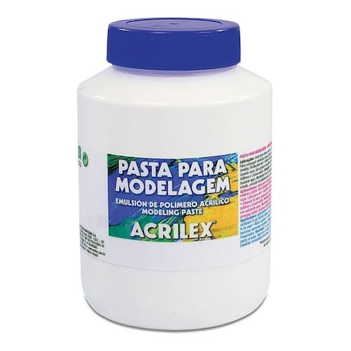 A pasta para modelagem acrilex é um produto ideal para obter relevos e texturas em telas, cerâmicas, madeira e papelão. Para conseguir camadas mais grossas, intercale secagem de 30 minutos entre as demãos.