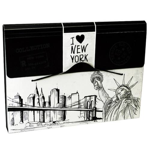 Produto: Pasta Sanfonada A4 Marca: Dello Modelo: Nova York Cor: Colorida estampa Nova York Material: Papelão e polipropileno Divisórias: 12 Dimensões: 331 x 32 x 244 mm Formato: A4